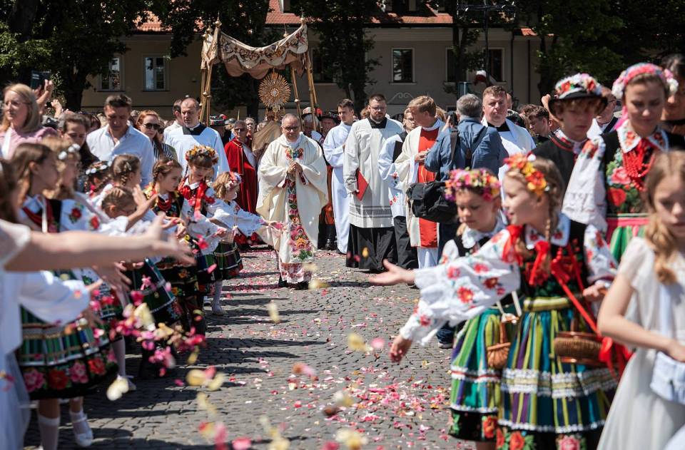 Barwne pasiaki, tradycyjne stroje łowickie, po raz kolejny wypełniły ulice Łowicza podczas uroczystości Bożego Ciała w 2025 roku. Ulicami miasta przeszła jedna z najpiękniejszych procesji w Polsce. Pełna kolorów, śpiewów i modlitwy, przyciągnęła tłumy wiernych oraz licznych gości z całej Polski i zagranicy.