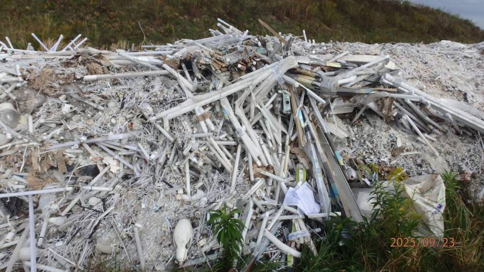 Niebezpieczny skład przy autostradzie! Ktoś porzucił górę świetlówek i żarówek, trwa dochodzenie policji i WIOŚ