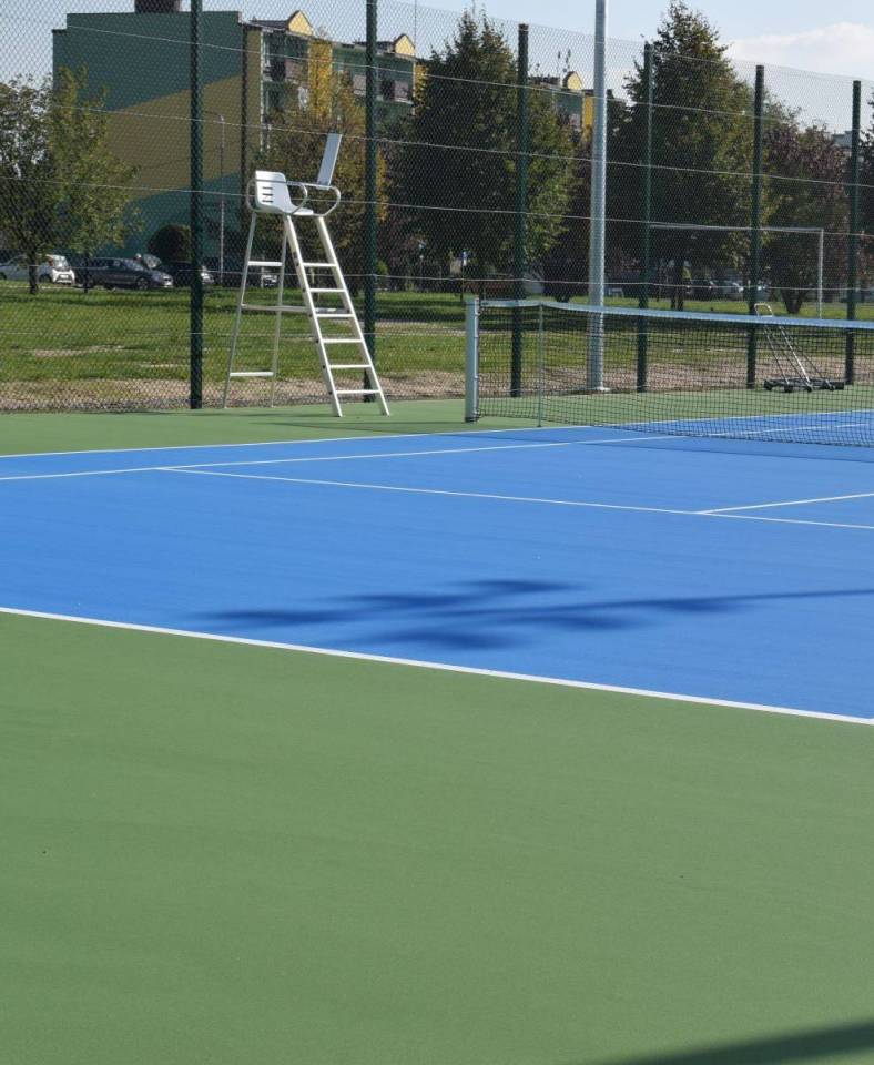 Nowe korty mają nawierzchnię akrylową w kolorach niebieskim i zielonym, są otoczone piłkochwytami, oświetlone oraz monitorowane. Wyposażono je także w elementy tzw. małej architektury – ławki, kosze, stojaki na rowery i stołki sędziowskie.