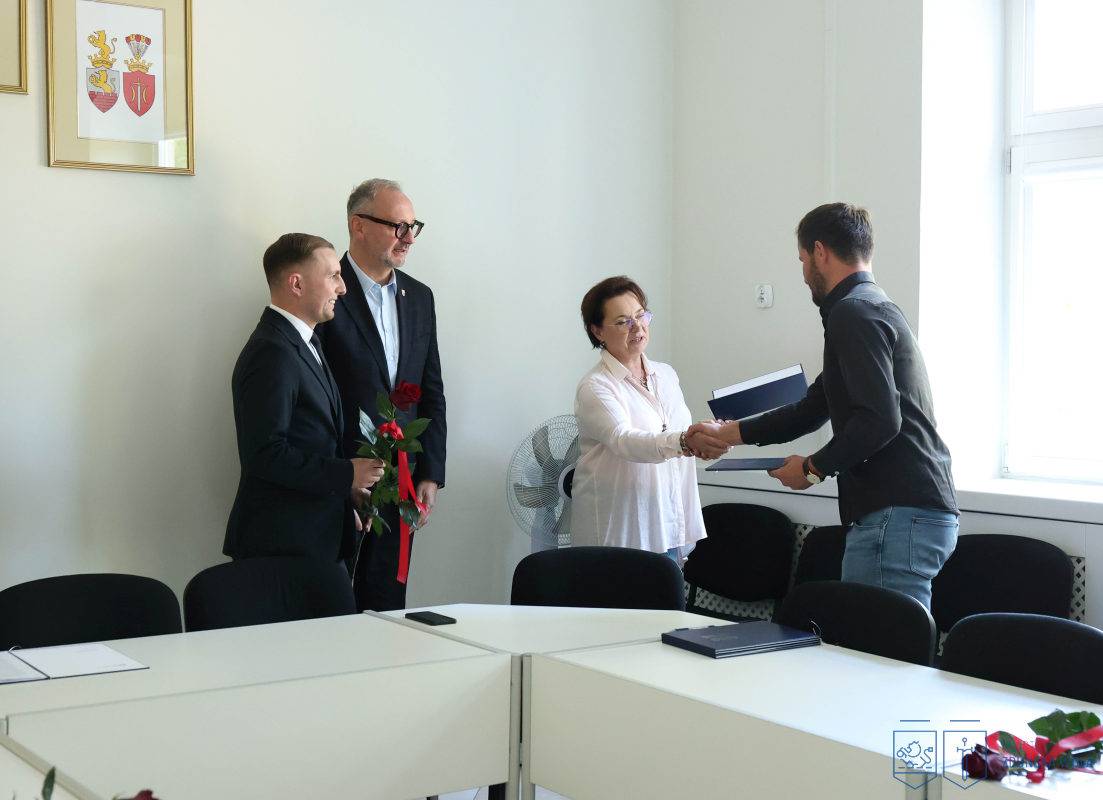 Nowi nauczyciele mianowani złożyli ślubowanie i odebrali akty nadania stopnia zawodowego podczas uroczystości, jaka odbyła się w Urzędzie Miasta Zduńska Wola w środę, 27 sierpnia 2025 roku.