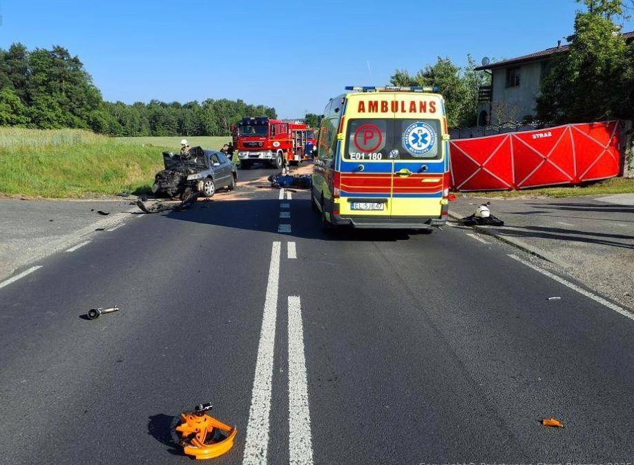 - Ze wstępnych ustaleń pracujących na miejscu funkcjonariuszy wynika, że kierujący osobówką mężczyzna najprawdopodobniej nieprawidłowo wykonał manewr wyprzedzania. W jego wyniku doszło do czołowego zderzenia z dwoma motocyklami, które nadjeżdżały z przeciwnego kierunku – od strony Bełchatowa - mówi asp. Dariusz Kaczmarek, oficer prasowy KPP Radomsko.